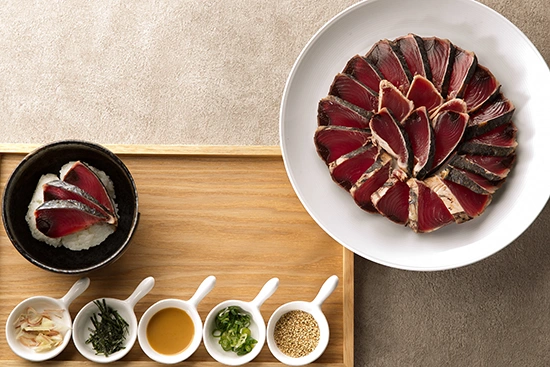 说到高知的名产,果然还是鲣鱼的鳕鱼。请用“茶泡饭”和“盖浇饭”享用那个鲣鱼的鳕鱼。“茶泡饭”是芝麻酱和热腾腾的汤汁,“盖饭”是甜味酱汁。请享用两种口味。